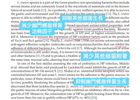 文中有提到一個研究 Helicobacter pylori eradication with Lactobacillus reuteri.A double blind placebo-controlled study. Dig. Liver Dis. 2005, 37 (Suppl. 1), S88.